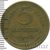 2574 5 копеек 1940 Br VF lexaber 27 32 Закрыто