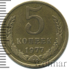 2613 5 копеек 1977 Cu-Zn XF Mdv 10 15 Закрыто