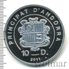 1086 10 динеров. Андорра 2011 Ag Proof (UNC) Алек55 33 2 006 Закрыто