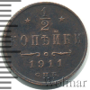 1027 1/2 копейки 1911 СПБ Cu VF/XF GAL 14 55 Закрыто