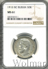 519 50 копеек 1913 ВС Ag MS 64 Kantemir 43 39 601 Закрыто