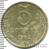 2657 5 копеек 1962 Cu-Zn XF+/AU босс 33 10 25 Закрыто