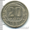 3487 20 копеек 1951 Ni XF- сын петра 51 178 Закрыто