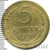 3798 5 копеек 1928 Br VF Кинг 10 16 Закрыто