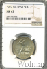 4186 Полтинник 1927 ПЛ Ag MS 62 zzz321 38 9 110 Закрыто