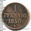 2361 1 пфеннинг. Германия. Ганновер 1850 В Cu VF+ Yaroslavchik 30 1 044 Закрыто