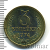 3406 3 копейки. Зеркальное поле 1974 Cu-Zn UNC Kalinar 12 205 Закрыто
