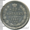 721 20 копеек 1860 СПБ ФБ Ag MS 63 gtnh1 33 11 788 Закрыто