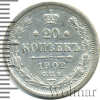 748 20 копеек R. 1902 СПБ АР Ag AU/UNC СергейАС 28 11 110 Закрыто