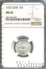4379 15 копеек 1925 Ag MS 65 702OK 27 6 665 Закрыто
