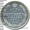 1031 10 копеек 1861 СПБ Ag XF+ borodkin 9 514 Закрыто