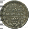 59 20 копеек 1869 СПБ НI Ag VF+ Бак1 27 255 Закрыто