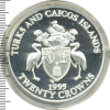 1845 20 крон. Теркс и Кайкос 1993 Ag Proof (AU/UNC) Wave 27 1 955 Закрыто