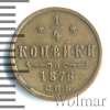 1781 1/4 копейки 1885 СПБ Cu UNC Vladcity 65 3 615 Закрыто