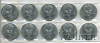 Подборка юбилейных рублей. 175 лет со дня рождения М.Ю.Лермонтова, 10 шт