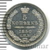 1017 5 копеек 1850 СПБ ПА Ag AU/UNC Axt 21 2 822 Закрыто