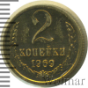 4149 2 копейки. Зеркальное поле 1969 Cu-Zn UNC f230 14 77 Закрыто