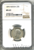 715 25 копеек 1895 Ag MS 63 Karter 27 19 720 Закрыто