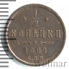 1316 1/2 копейки R 1869 СПБ Cu AU pentax 38 11 039 Закрыто