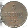 1545 5 пенни. Финляндия 1892 Cu XF Sortex 27 2 217 Закрыто