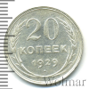4049 20 копеек 1929 Ag AU/UNC Shkryab 7 163 Закрыто