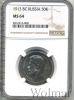 538 50 копеек 1913 ВС Ag MS 64 Bogdanych66 17 19 998 Закрыто