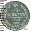 714 10 копеек 1869 СПБ НI Ag XF+ zozons 27 1 617 Закрыто