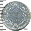 4643 15 копеек 1921 Ag VF smt 31 1 974 Закрыто