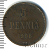 1299 5 пенни. Финляндия 1906 Cu VF/XF EugeneKL 25 210 Закрыто