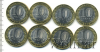 Подборка юбилейных 10 рублей, 8 шт