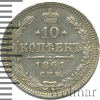 847 10 копеек 1861 СПБ Ag XF+/AU Tit 26 1 128 Закрыто