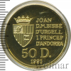 1875 50 динеров. Андорра 1991 Au 15,62 PF (UNC) Сorsair 19 39 537 Закрыто
