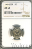 4902 15 копеек 1949 Ni MS 64 skrong 29 6 311 Закрыто
