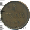 1306 5 пенни. Финляндия 1906 Cu VF ustas1s7 17 114 Закрыто
