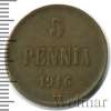 1350 5 пенни. Финляндия 1916 Cu VF/XF AIK 29 205 Закрыто