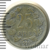 2519 25 эре. Швеция 1902 Ag VF+ Chak 41 696 Закрыто