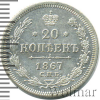 742 20 копеек 1867 СПБ HI Ag XF+/AU Oldys 25 1 021 Закрыто