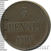1108 5 пенни. Финляндия 1908 Cu VF Mak 13 107 Закрыто