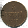 1147 5 пенни. Финляндия 1917 Cu VF/XF A-Mishin 25 109 Закрыто