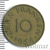 2098 10 франков. Саарленд 1954 Cu-Al XF- Gora 58 342 Закрыто