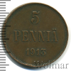 1585 5 пенни. Финляндия 1913 Cu XF SandWind 19 118 Закрыто