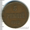 1595 5 пенни. Финляндия 1915 Cu VF/XF Akakiy 33 111 Закрыто