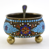 6535 Солонка с ложечкой, украшенные полихромными эмалями по скани Ag 84 пробы XX g.birukov 100 12 084 Закрыто
