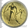 На матовой поверхности диска - изображение двух лыжников на дистанции на фоне стилизованного изображе-ния снежинок. Тираж: 500 шт. 999 проба. Диаметр 33 мм.