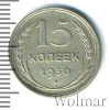 4089 15 копеек 1930 Ag AU Mak28 27 336 Закрыто