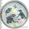 Изображения двух девочек и мальчика на корточках, рисующих цветными мелками на тротуаре: в центре - солнце, слева - фигурку человечка с шариком, внизу - цветы на траве и бабочку, вверху вдоль канта- надпись по окружности: "МИР НАШИХ ДЕТЕЙ", под ней - эмблема Евразийского Экономического Сообщества. Тираж 5 000 шт