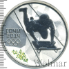 Выпуск 2012. На матовом поле диска в центре - рельефное изображение скелетониста на трассе, обозначенной двумя линиями, слева от него в две строки - надпись: "СОЧИ" и дата: "2014", под ними - пять Олимпийских колец, внизу слева у канта - цветное изображение веточки самшита. Тираж до 35 000 шт.