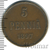 1458 5 пенни. Финляндия 1897 Cu VF+/XF кгф777 25 94 Закрыто
