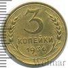 Лот №3729.  3 копейки 1936г. Br.