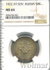 4659 50 копеек 1922 АГ Ag MS 63 cuvak 33 12 447 Закрыто